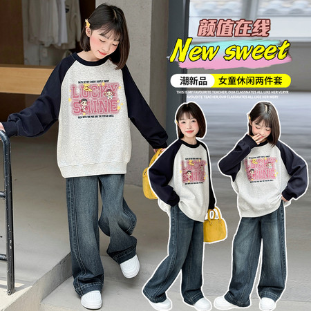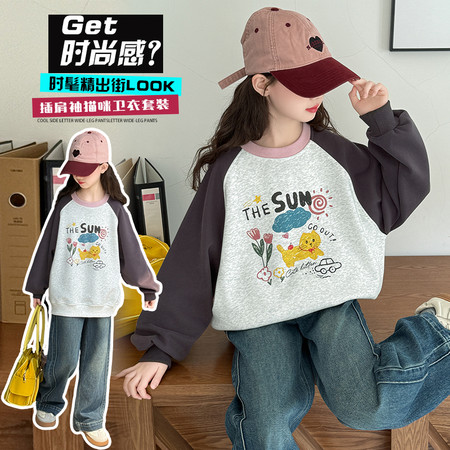 1*9收藏“2526假两件猫咪加绒卫衣牛仔裤套装”