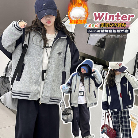 1*6收藏“2528笑脸擦肩拼色新款加棉加厚连帽外套”